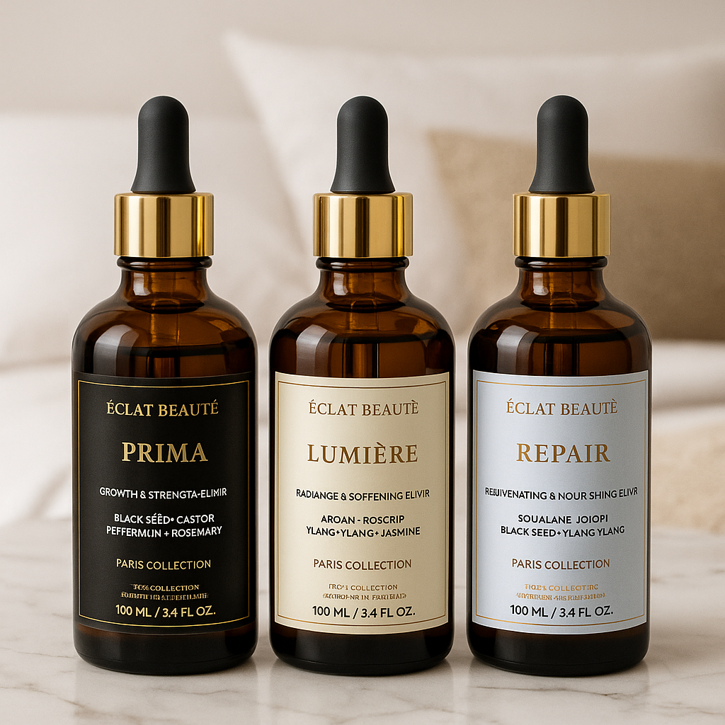 Presented together, this set delivers the ultimate luxury routine for stronger hair, glowing skin, and revitalised eyes — all in ÉCLAT’s signature Parisian-inspired packaging.